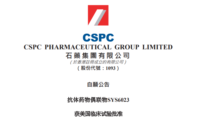 石药集团抗体药物偶联物SYS6023获得美国临床试验批准