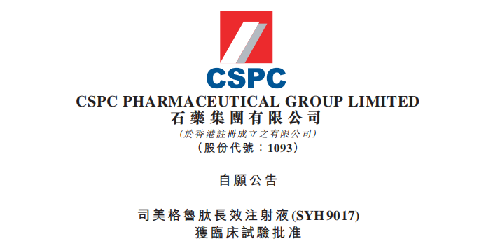 12月20日,石药集团宣布,本集团开发的GLP-1受体激动剂司美格鲁肽长效注射液(SYH9017)(下称:该产品)已获中华人民共和国国家药品监督管理局批准,可以在中国开展临床试验。