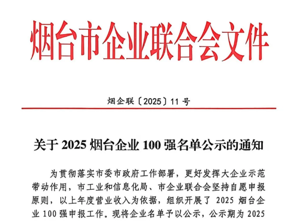 石药百克入选“2025烟台企业100强”榜单
