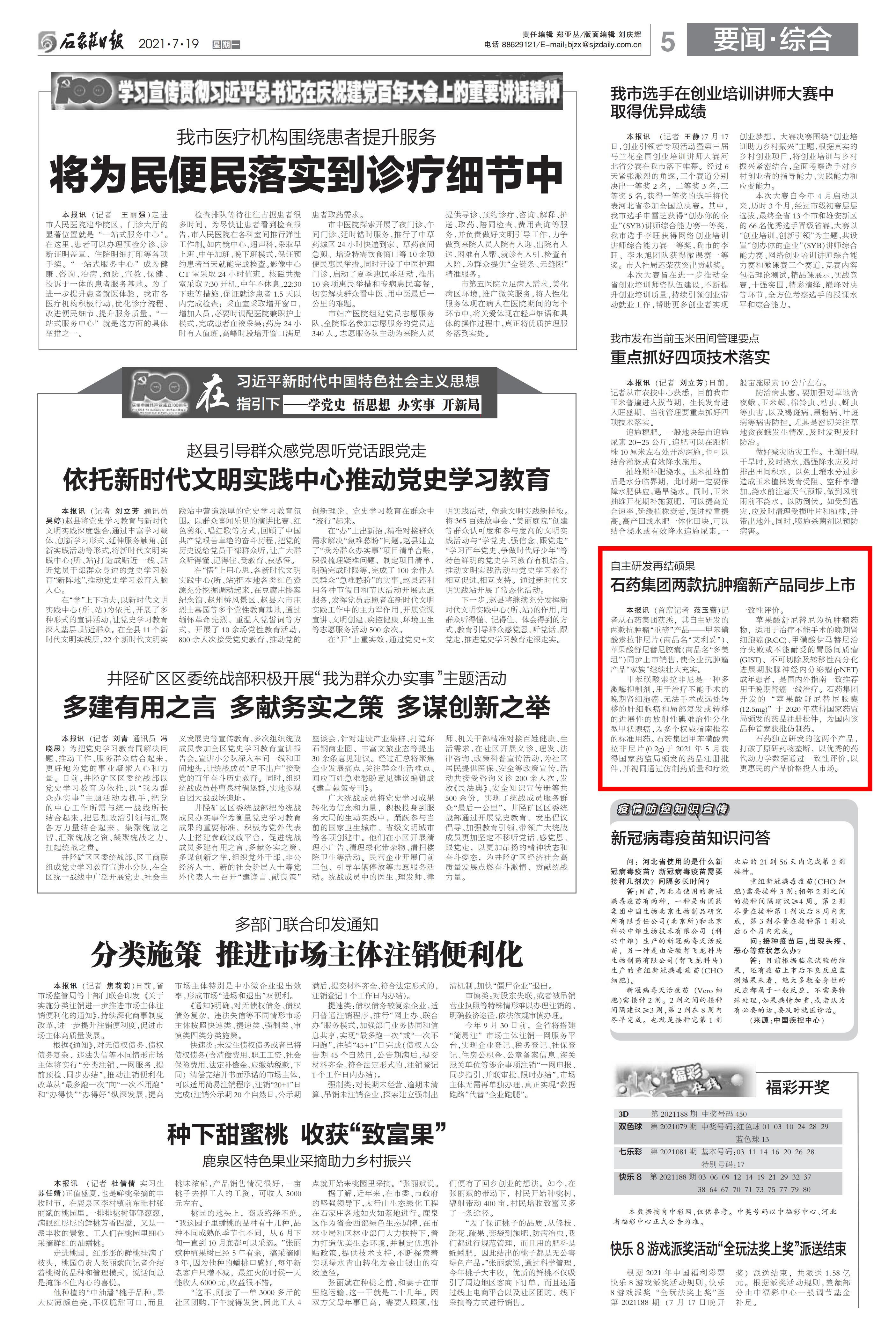 石药集团两款抗肿瘤新产品同步上市