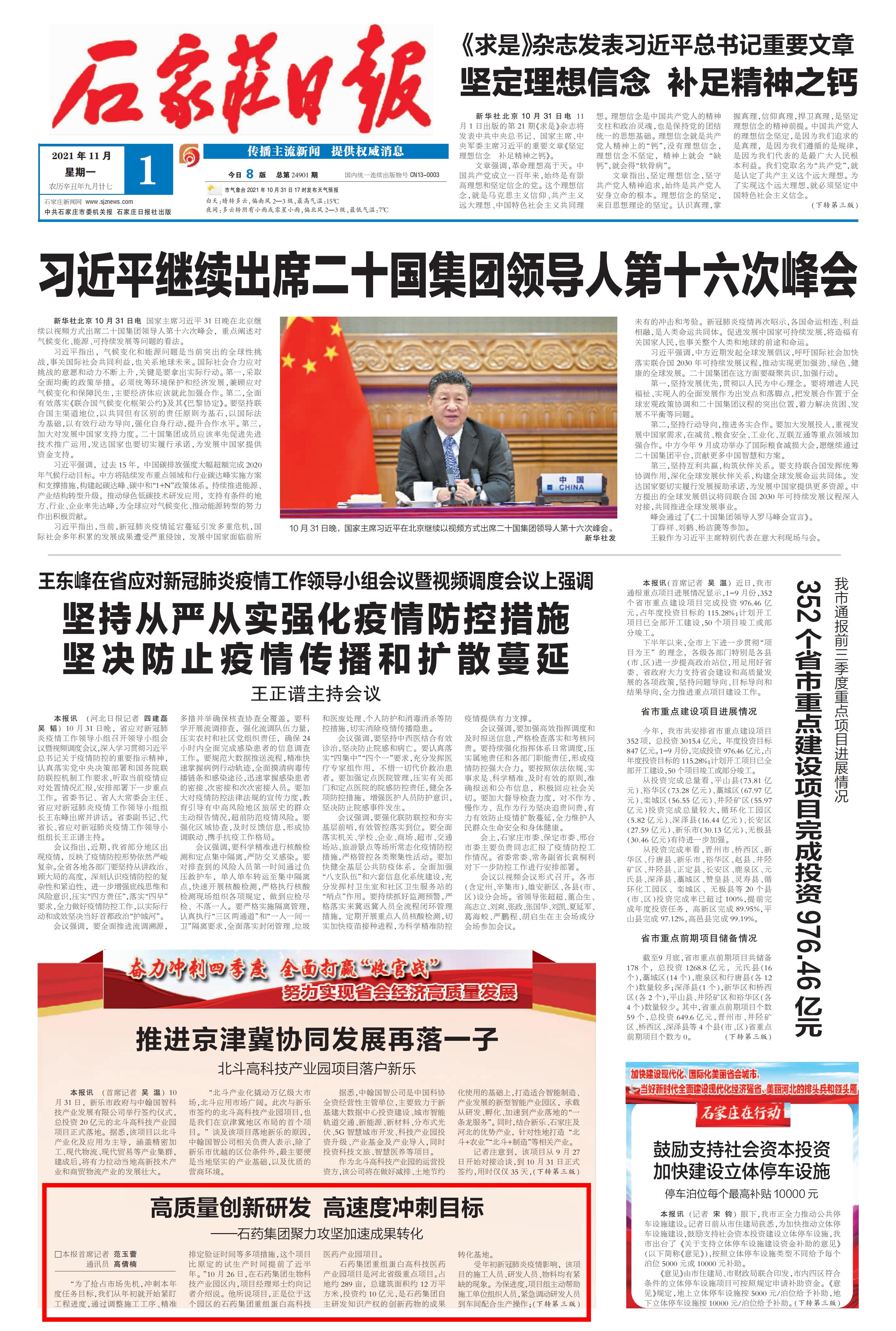 奋力冲刺四季度丨高质量创新研发 高速度冲刺目标——石药集团聚力攻坚加速成果转化