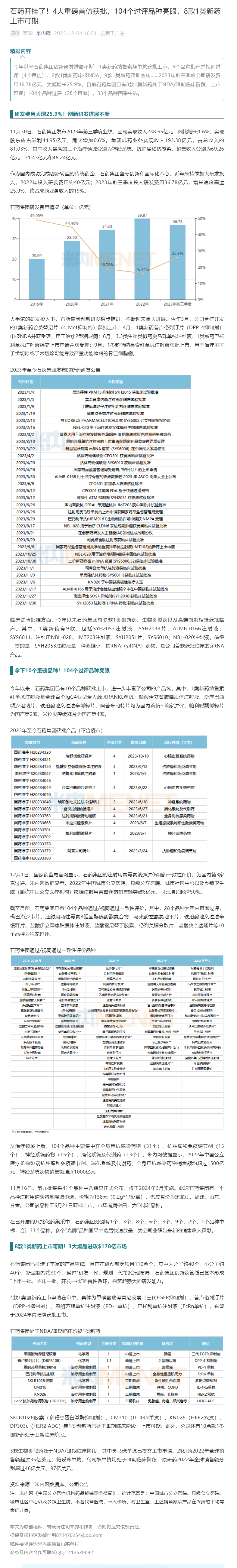 石药开挂了!4大重磅首仿获批,104个过评品种亮眼,8款1类新药上市可期