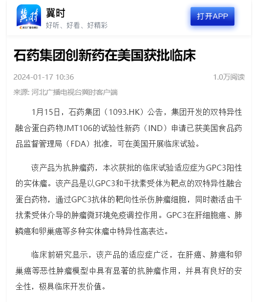 石药集团创新药在美国获批临床