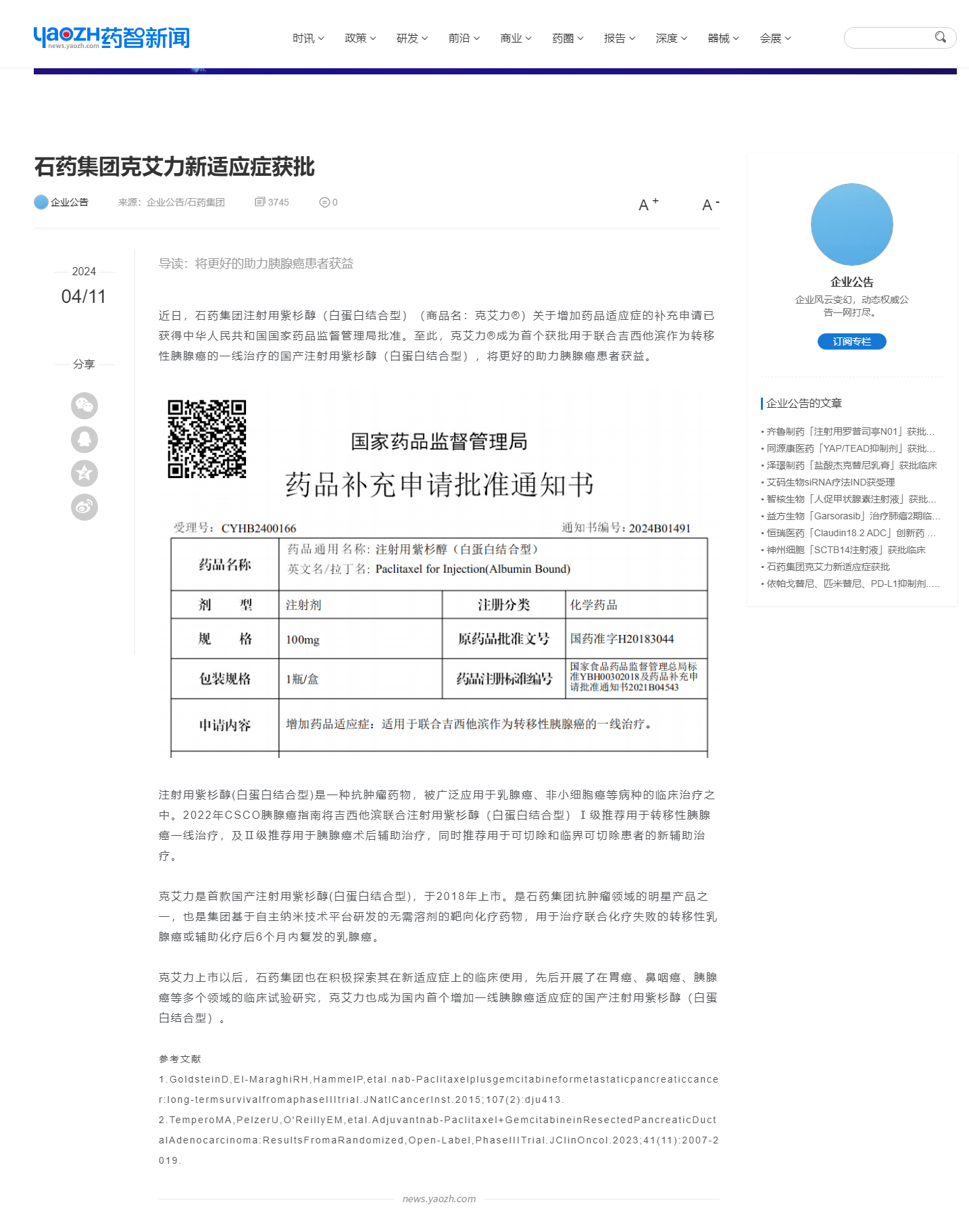 石药集团克艾力新适应症获批