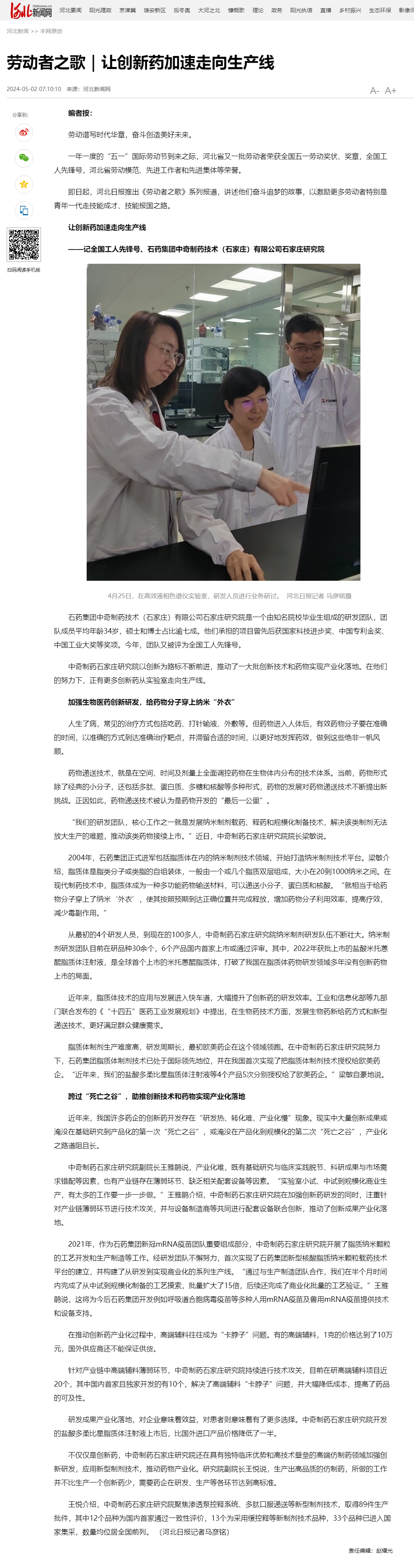 劳动者之歌|让创新药加速走向生产线——记全国工人先锋号、石药集团中奇制药技术(石家庄)有限公司石家庄研究院