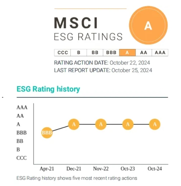 MSCI ESG评级是深受全球投资机构广泛认可的ESG评价体系之一,评级权威度、公信度高,评级结果被国内外投资者广泛应用于投资决策中。石药集团一直秉持可持续发展理念,致力于推动ESG各项实践,本年度再次获评A级,体现了国际资本市场对石药集团管理成果的认可。